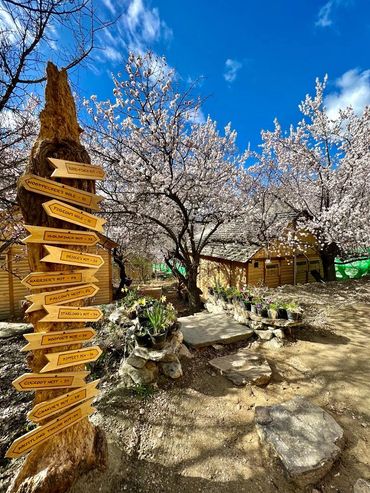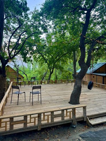 The 2 Magpies is a labor of love of two nature enthusiasts & bird lovers Arif and Umbreen. Named after beautiful local birds of the region-Magpies (Ghasrep in Burushaski) that frequent the garden. It is a quiet, relaxing spot for a family vacation, a place to rejuvenate after mountain treks, or a quiet spot for painting, writing a book or your research paper . The charming wood huts located amongst trees facing mountains are just the right place for relaxation.